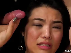 Dutiful Asian babe with big natural breast loves being gangbanged